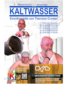 Nach einer Schaffenspause startete das Wasserturm-Ensemble 2017 mit "The All American ARZTROMAN" wieder durch. Nach kurzen Gastaufenthalten in Mühlheim und Kalk fand das Ensemble 2019 im Geschwister Scholl Haus, Longerich eine neue Stammspielstätte. Seitdem erfreuen wir wieder jährlich unser Publikum mit wechselnden Komödien, Lustspielen und Schwänken.