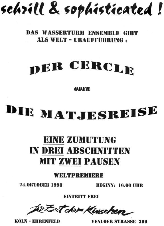 2004 entstand dann das erste Theaterstück mit dem Titel „Rotkäppchen, und so weiter...“, das im Klüngelpütz, Köln seine Uraufführung fand. Dieser Zeitpunkt stellt den Beginn einer Serie von jährlich aufeinanderfolgenden, heiteren Theaterproduktionen dar. Unter der Regie von Thorsten Cremer und Jörg Diederichs wurden sie bis 2013 erfolgreich an der „Bühne der Kulturen“ in Ehrenfeld gegeben.