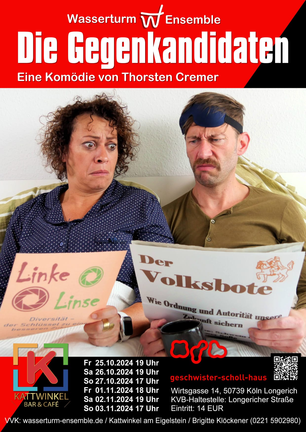 Nach einer Schaffenspause startete das Wasserturm-Ensemble 2017 mit "The All American ARZTROMAN" wieder durch. Nach kurzen Gastaufenthalten in Mühlheim und Kalk fand das Ensemble 2019 im Geschwister Scholl Haus, Longerich eine neue Stammspielstätte. Seitdem erfreuen wir wieder jährlich unser Publikum mit wechselnden Komödien, Lustspielen und Schwänken.